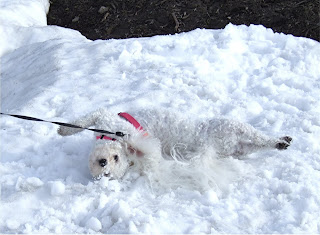 On one stop, we let Cassie out to sniff the snow. Instead, she immersed herself in it and rolled around scratching her back, much to my dismay since I would have to have a cold wet dog in my lap for the remainder of the drive.